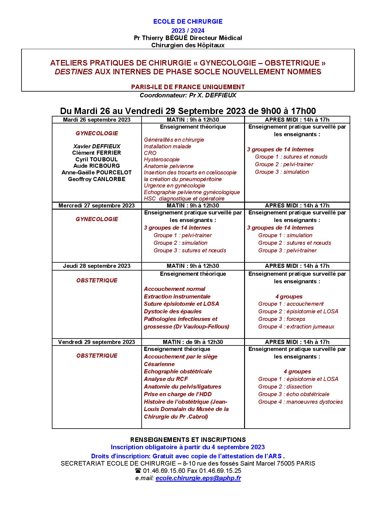 ECOLE DE CHIRURGIE : cours phase socle promotion 2023